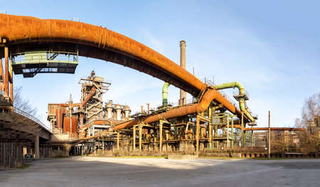 Industrial factory in Duisburg, Germany. Public park Landschaftspark, landmark and tourist attraction.