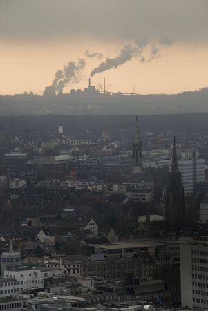 Urban landscape of city of Essen of industrial area of Ruhrgebiet, North Rhine-westphalia, Germany, Europe