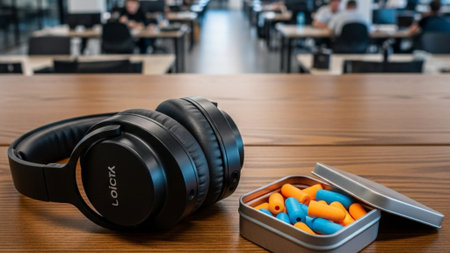 A cinematic wide shot capturing the isolated struggle for quiet focus in a sprawling, modern hybrid