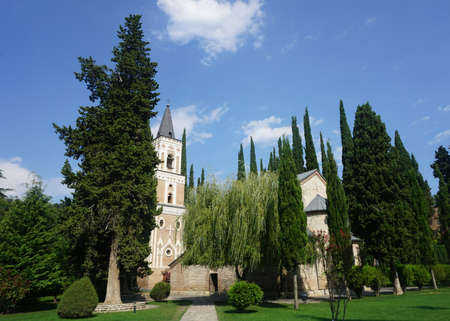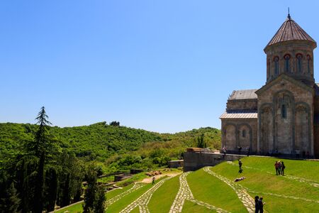 Sighnaghi, Kakheti, Georgia - May 2, 2018: Monastery of St. Nino at Bodbe is a Georgian Orthodox monastic complex and the seat of the Bishops of Bodbe