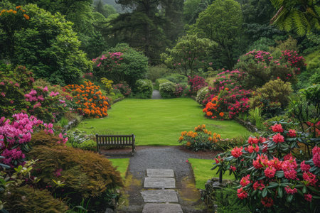 Lush Rhododendron Garden Displaying Vibrant Spring Colors and Serene Ambiance in Nature