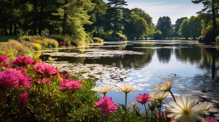 Exquisite Floral Garden with Vibrant Blooms and Manicured Lawn in Summer