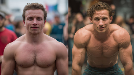 man with pumped up muscular body outdoors health workout