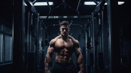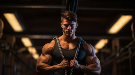 Focused Fitness: Attractive Man Engaged in Intensive Training Exercises .Ai