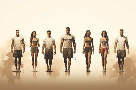 Group of trainers stepping forward on a white and brown background, young fitness trainers.