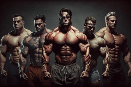 Many bodybuilders are pumped up men. AI Generated