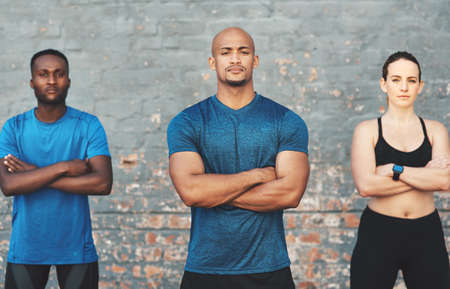 Were in it for the fitness. Cropped shot of three sportspeople standing together.