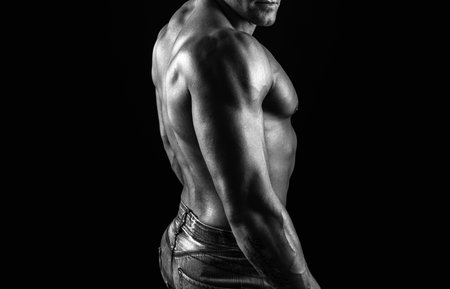 male athletic physique cropped view muscle dark background