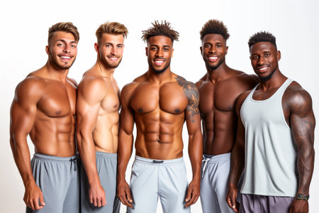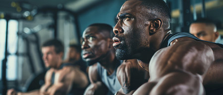 group athletes bodybuilders posing most muscular fitness competitions