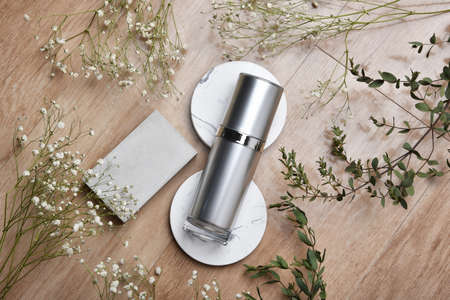 mockup of beauty fashion cosmetic makeup bottle lotion serum product with skincare healthcare concept on background