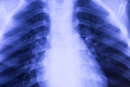 X-Ray image of human chest and thorax in blue tone