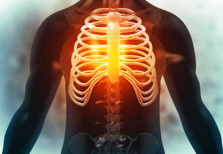 Human Skeleton Body of Sternum Bone Anatomy For Medical Concept 3D Illustration