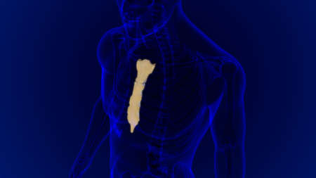 Human Skeleton Sternum Bone Anatomy For Medical Concept 3D Illustration
