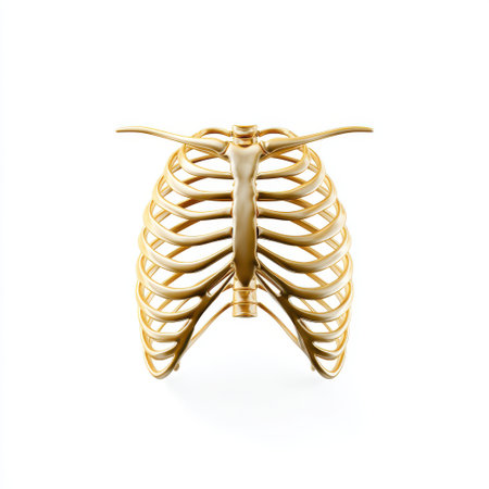 Golden Human Ribcage Model Isolated on White Background for Medical and Anatomical Illustrations, Educational Materials, and Artistic Designs