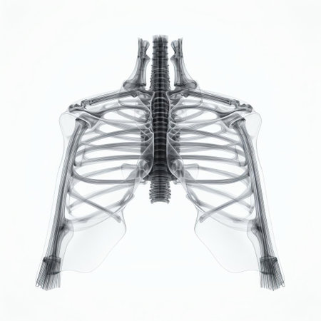 High-resolution X-ray image depicting the chest area, highlighting the rib cage and spinal structure, useful for educational and medical purposes.