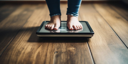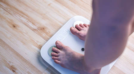standing on the indoor scales There is space for text. The problem of being overweight or underweight
