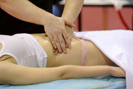 visceral massage and therapy in modern health centre of alternative medicine, closeup
