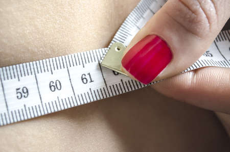 Woman measures the perfect body with a tape measure,effects of diet and weight