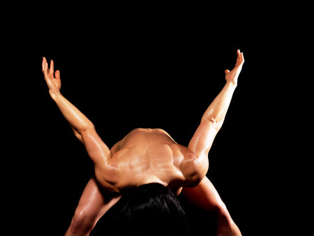 Naked woman sexy body silhouette pose like nude abstract on black background.
