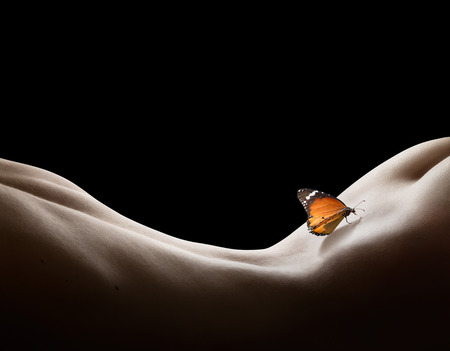 artistic photo manipulation of a toned Nude female body. Black and white erotic photography