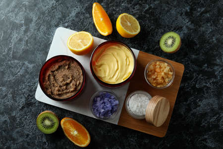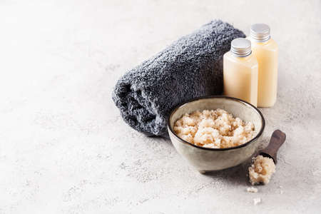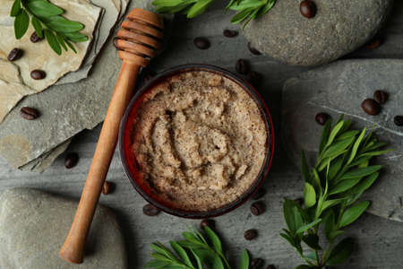 Skin care scrub concept on gray textured background