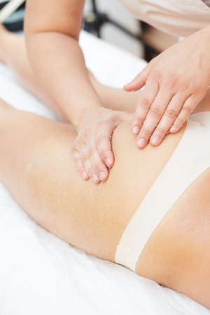 Beautiful woman make scrubbing for her legs