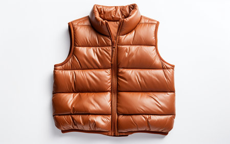 dark blue sleeveless jacket, beige t-shirt and dark blue sports shorts isolated on white background. Valid clothes for cool weather