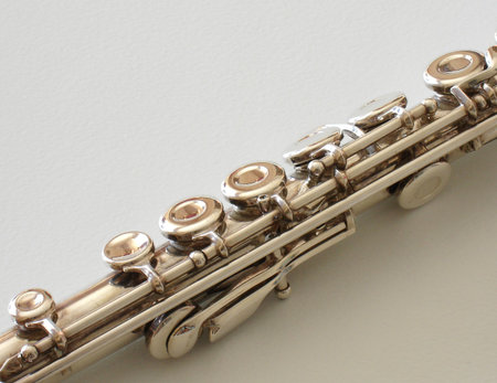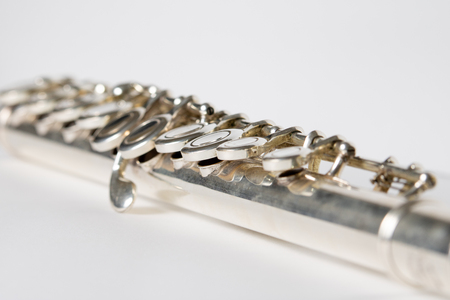 Flute with a close shallow view of the keys and main body