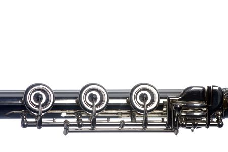 A section of flute keys isolated against as white background in the horizontal format.