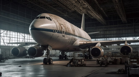 Big passenger aircraft on maintenace in airport hang AI generated illustration