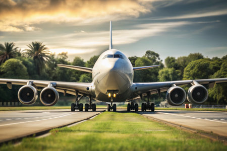 Huge airplane in the runway. Transportation and tourism industry. Journey