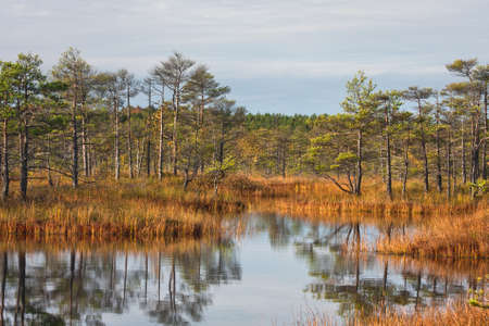 Autumn landscape in the swamp. Beautifull view of the swamp Elnya Belarus