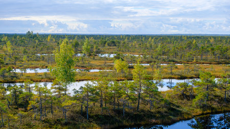 The landscape around walking path of Viru bog, one of the most accessible bogs in Estonia, Located in Lahemaa National Park