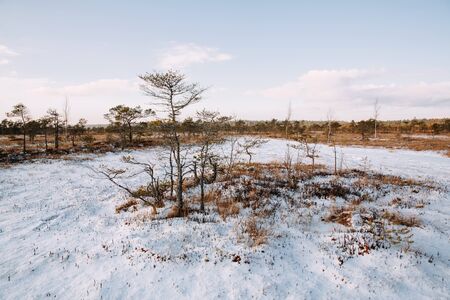 Landscape photography. Swamp on a cold winter morning.