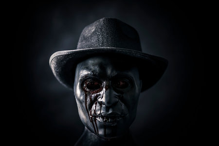 Chilling photograph of a sinister undead creature in darkness, evoking a haunting atmosphere