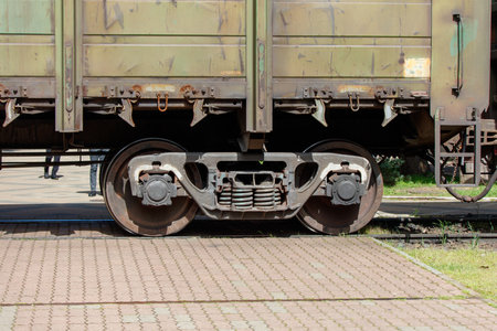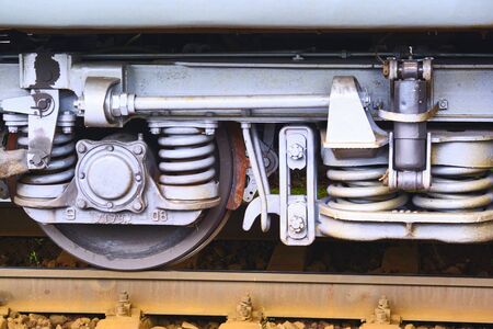 Detail shot with wheels and suspension system from an old train wagon