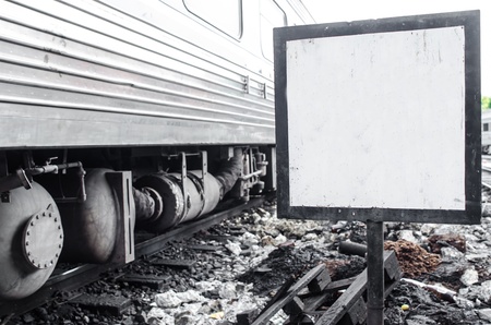 Close up Steel railroad fasteners.Iron nuts fastened to railway tracks.Rusty old iron freight train In the train station, Thai train stops at the station.soft focus.
