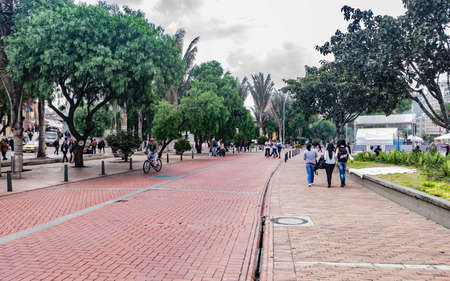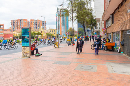 Bogota, Colombia March 17 in the week end San Diego District in the historic center of the city, become a meeting point for artists and musicians and cyclists. Shoot on March 17, 2019