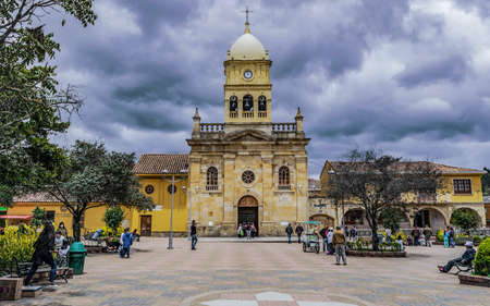 LA CALERA CUNDINAMARCA, COLOMBIA - OCTOBER 14, 2017: Sunday in the central park of La Calera Cundinamarca, one of the main towns outside Bogota, Colombia