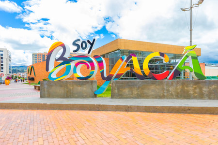 Tunja, Colombia May 10 This sign welcomes visitors in the colonial city of Tunja. The sign is located in the historic center of the city. Shoot on May 10, 2019