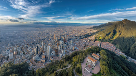 Aerial view of buildings and mountains from Monserrate hill of Bogota, the capital citiy of Colombia, in South America