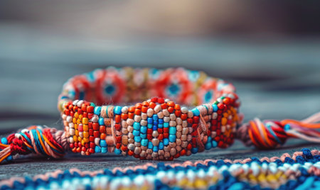 This captivating image features an arrangement of colorful beaded bracelets atop a beautifully patterned fabric, highlighting the artistry and craftsmanship of handmade jewelry.