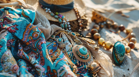 Bohemian Style Fashion Detail with Colorful Textures and Accessories