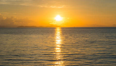 orange mystic sunset of sea of japan. Dramatic view of the morning sunrise in the cloudy sky. bright saturated colors of morning dawn at the sea in the ocean