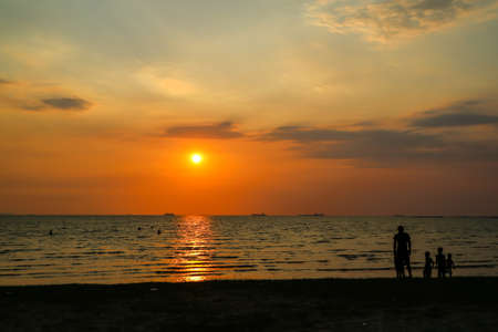 Sunset on the beach, atmospheric mood of sea view concept photography