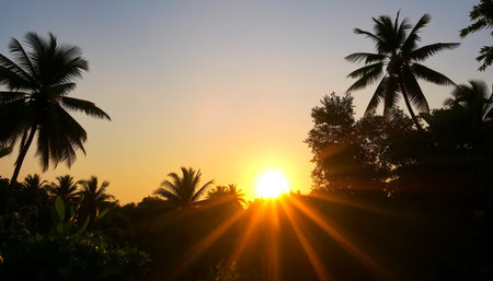 Tropical nature clean beach sunset sky time with sun light cover banner background.