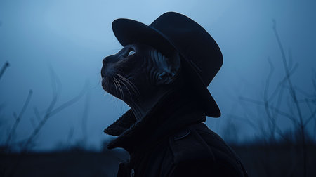 Bald person with serious expression, wrapped in a thick, dark fabric, with a piercing in one ear. Soft lighting enhances facial features, creating a dramatic, moody atmosphere