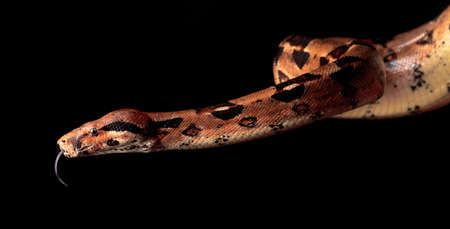 Colombian Boa. Tropical brown constrictor. Snake skin with yellow and black spots on a white background