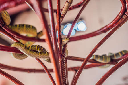Snake on branch in Snake Temple at Penang, Malaysia.