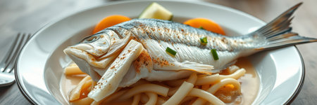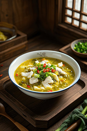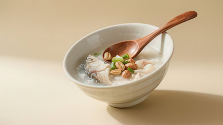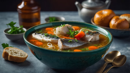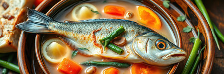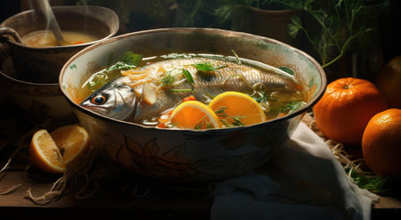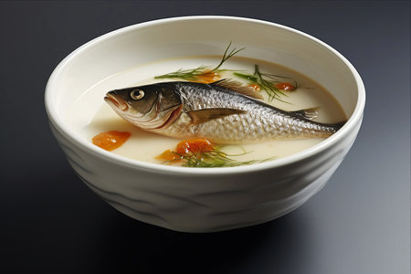Savor the Delights: A Ceramic Bowl with Fish Soup -- AR 3:2